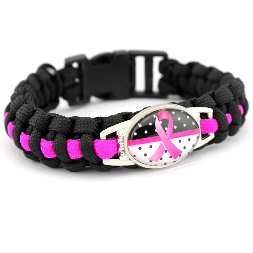 المنتجات ذات الصلة ل Paracord و الشريط الوردي سرطان الثدي سرطان الوعي بقاء Paracord سحر أساور 18*25mm الزجاج كابوشون الرجال النساء مجوهرات هدية