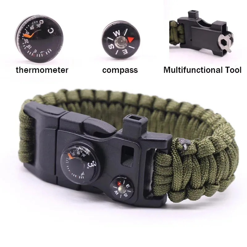 معرض من في الهواء الطلق التخييم بقاء سوار Paracord مع معدات صيد الأسماك صافرة ميزان الحرارة مضفر مظلة حبل عدة الانقاذ معصمه EDC