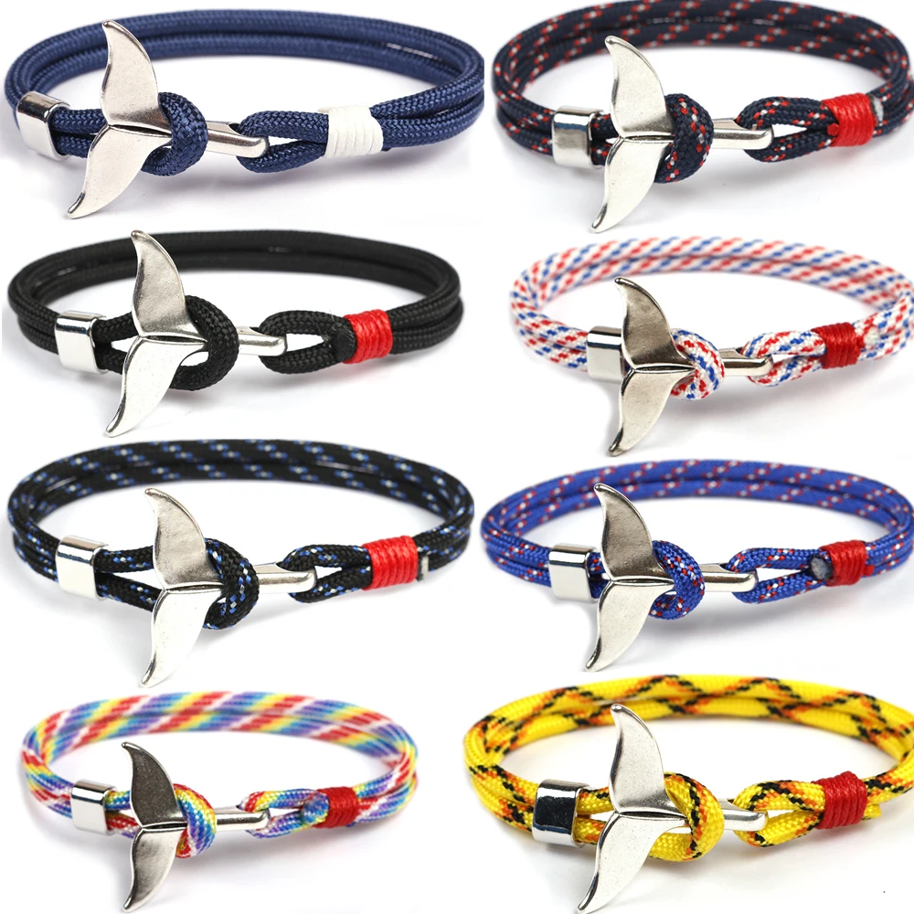 معرض من ذيل القرش الحوت مرساة سوار للرجال النساء أزياء حبل نايلون سلسلة Paracord سوار الذكور المعصم العصابات